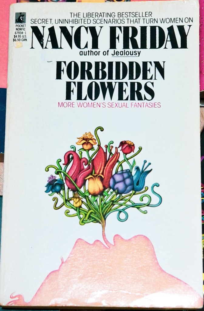 “Nancy Friday’s second collection of sexual fantasies is even more explicit and outspoken than her erotic masterpiece My Secret Garden. The constant refrain from the thousands of women across America who read My Secret Garden was “Thank God I’m not the only one…” who has those wild, exciting, outrageous thoughts that bring so much sexual pleasure. Now the women in Forbidden Flowers rejoice in the awareness and acceptance of their inner sexual lives. The new word is joyful. And, this new breakthrough book adds an exhilarating new freedom to the changing man-woman relationship.”