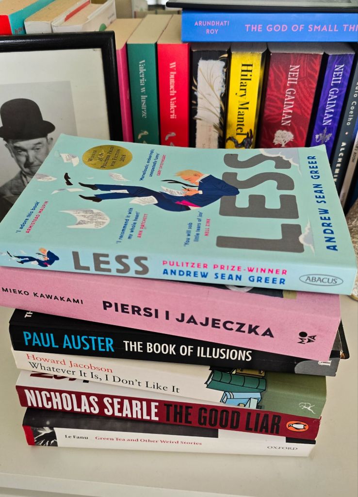 I have wonderful news (as if you didn’t expect it, dah…). Despite my lack of time, my collection has grown, which resulted in my failure to curb my book-shopping habits. Not even daily shopping can keep me from growing my, already sizable, collection. Sainsbury or Tesco have their miniature second-hand book stalls now and, as if bewitched, I run to meet my potential treasures on every occasion. My bank brunch hasn’t spared me, eater, I snatched three copies with pride not long ago (Green Tea and Other Weird Stories; Whatever It Is, I Don’t Like It; The Good Liar). My P has been losing (amazing for some time) his angelic patience and hope that this will ever change. Despite a regular paper avalanche of new acquisitions raining down on our house, neither requests nor threats work. I read like possessed and never stop with the book I have just started. Currently, I’m in the middle of Welcome to the Hyunam-dong Bookshop; Flights; House of Leaves. I find it hard to resist when I see my potential TBR on my bookshelves. It’s quite problematic (isn’t it?).
